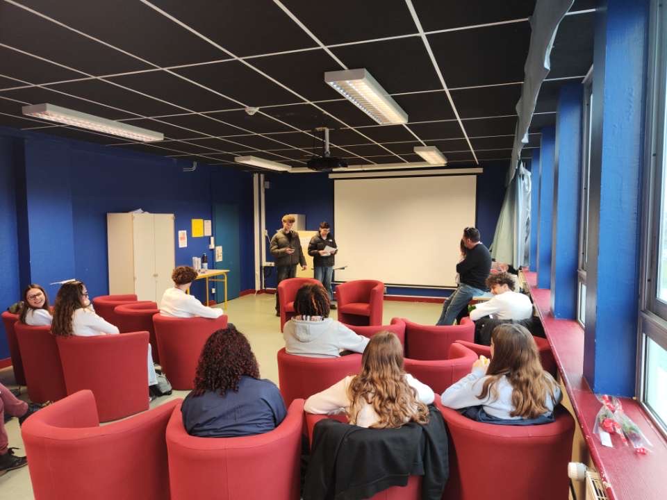 Le 05 février 2026, le lycée Jean Moulin a accueilli deux intervenants : le gérant Audigué Mikaël ainsi que la secrétaire Audigué Caroline de l’entreprise AMC construction, dans la salle cinéma de 16h à 17h. Ils ont été reçus dans le but de présenter leur entreprise à la classe terminale A de l’enseignement spécifique RHC afin d’approfondir les connaissances dans le domaine de la sécurité au travail et la gestion d’une entreprise.